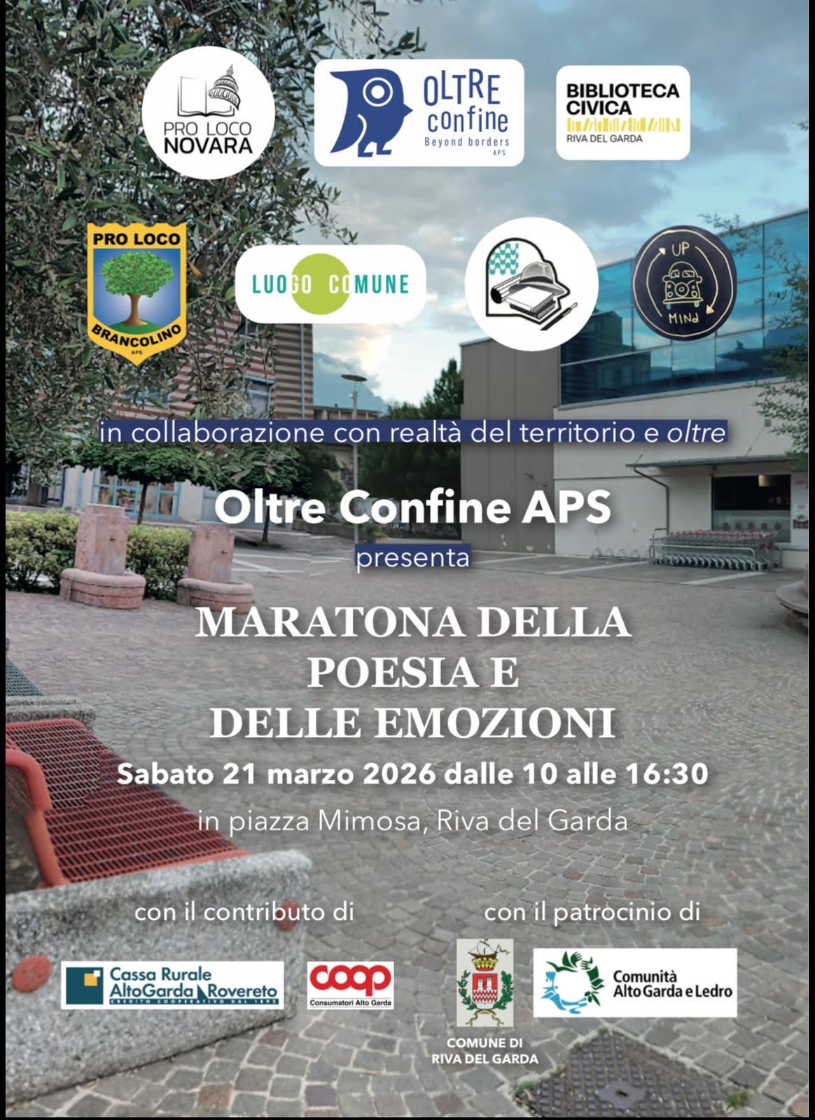 Oltre Confine APS propone una Maratona Poetica sull’intelligenza emotiva dedicata alle associazioni sociali e culturali che, in questi anni difficili, si sono adoperate per il bene comune insieme a tutti quei volontari che hanno lavorato nell'ombra senza chiedere nulla in cambio e che sono diventati gli angeli del nostro tempo. Inoltre l’intento è quello di arrivare al cuore dei giovani: attraverso la poesia offrire strumenti per capire meglio i propri sentimenti, in modo gentile e delicato.